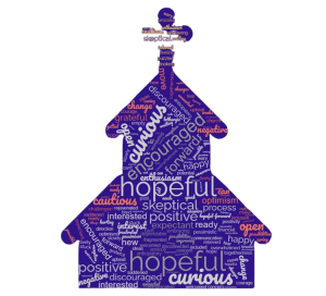 - I fine-tuned the Listening Circles Presentation; I’m excited to find out what your response is to it. Here’s a sneak preview of a ‘word cloud’ of your response to my first question: How are you feeling as we gather? As you can see, the dominant feelings were hopeful and curious.