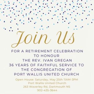 The decommissioning of Fairview United Church is taking place on Saturday morning and I will attend that, Rev. Ivan Gregan’s retirement Open House is Saturday afternoon, which I will also attend. You are all welcome to attend both of those!