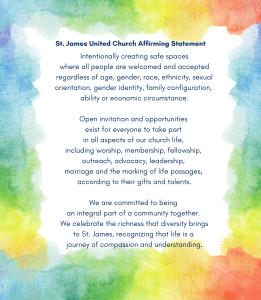 One of the first executive orders that Trump signed was about Trans people. We are an Affirming Church; up on the screen is our affirming statement. Let’s say those words together: