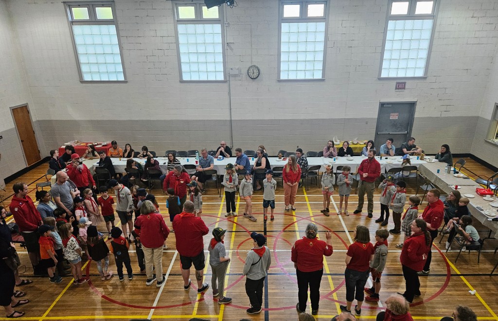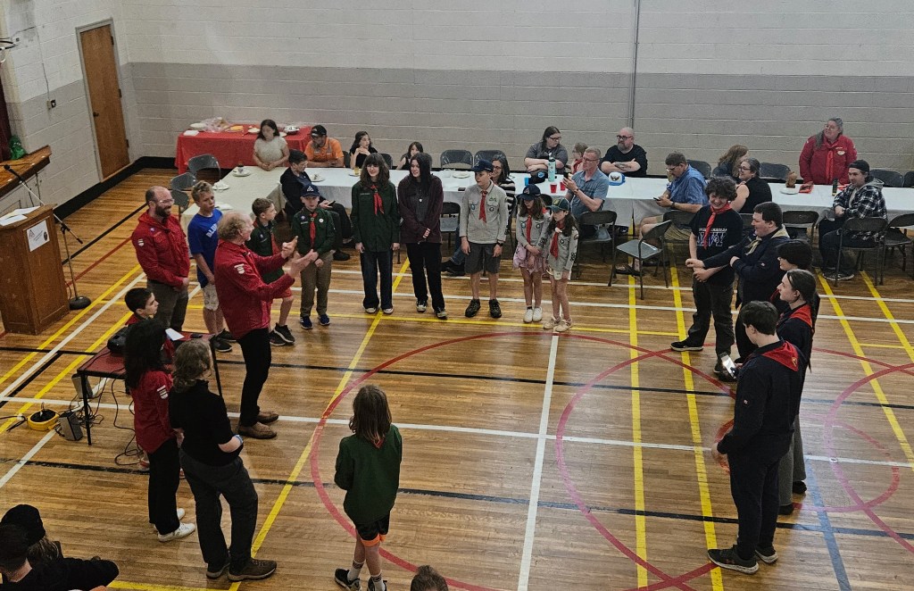 I was delighted to be in attendance at the Scout Banquet once again this year; here are some pics as the beavers ‘swim up,’ the cubs ‘leap up,’ and I’m not sure what the scouts and ventures do. Awards for service were given to some of the leaders including Joyce Wylie, but I didn’t manage to get a picture of that!